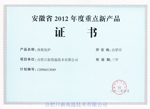 公司科技創(chuàng)新取得階段性成果,預(yù)氧化爐項(xiàng)目列入2012年度安徽省科技廳重點(diǎn)新產(chǎn)品計(jì)劃,通過省科技廳科技成果鑒定;一種碳纖維預(yù)氧化爐申請(qǐng)兩項(xiàng)國(guó)家專利。